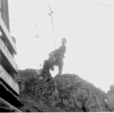 hang up his leg still in his trousers when retiring to his camp bed. Bill